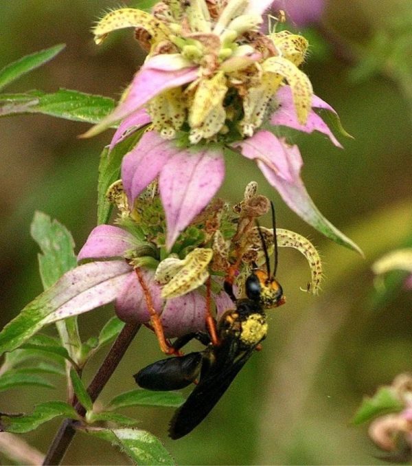 It is an eccentric beauty in form and color with complex blossoms topping 2’ stems in hues of pinkish-purple, green, beige, and maroon. These blossoms attract honeybees, bumblebees, and many butterflies, including Karner Blue butterfly. Spotted Bee Balm is also one of the host plants for the Raspberry pyrausta butterfly. The scent of this plant is repugnant to mammalian herbivores so is rarely consumed by them.